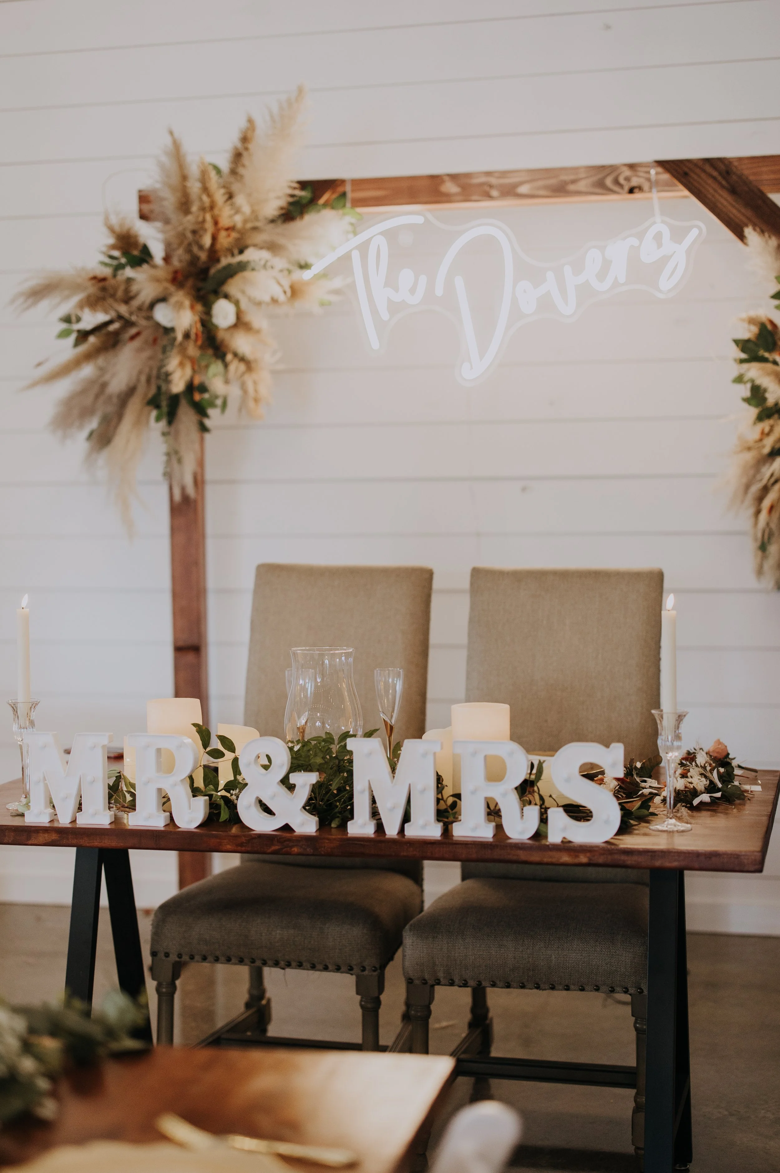 Client has the opportunity to rent 3'x5' handmade sweetheart table, 2-3'x8' handmade table for Bridal/Groom party 9' Handmade wooden cross